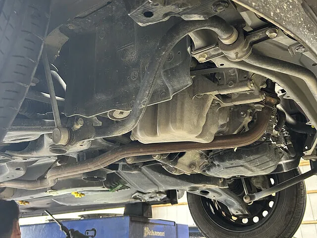 まずリフトアップし、オイル漏れ・ブーツのヒビ割れ・サスペンションのガタつきなどを入念にチェック。