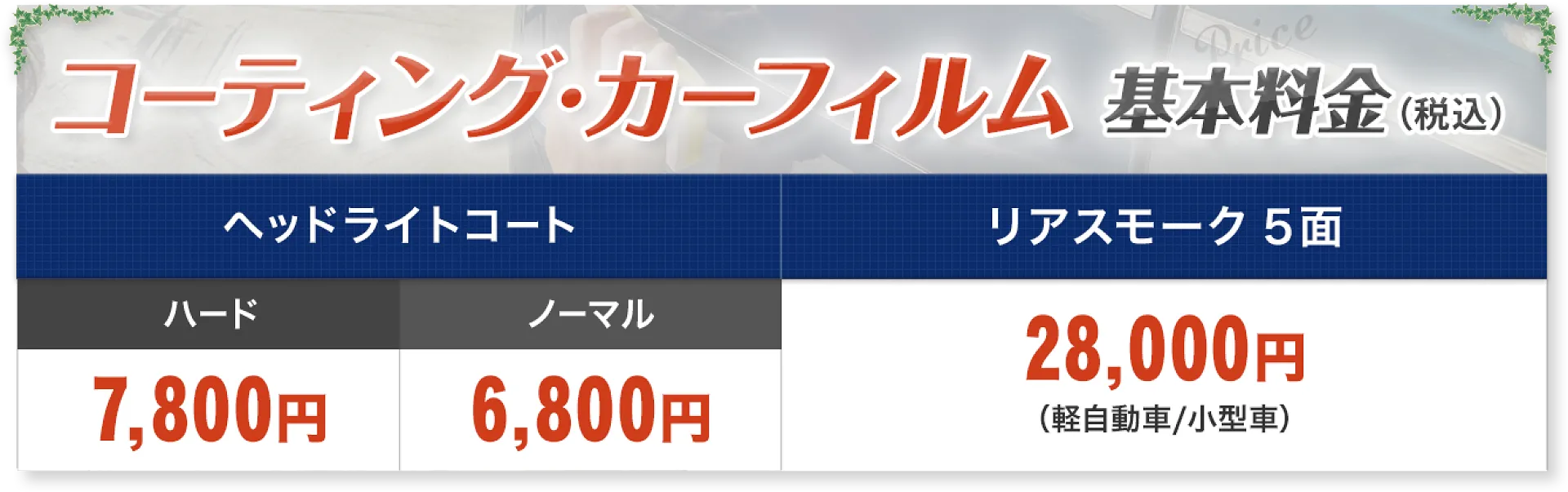 汚れを落しやすくキズがつきにくい、水をはじき落とす性質を持つガラス系コーティングで、大切なお車のボディをいつまでもピカピカにしませんか?