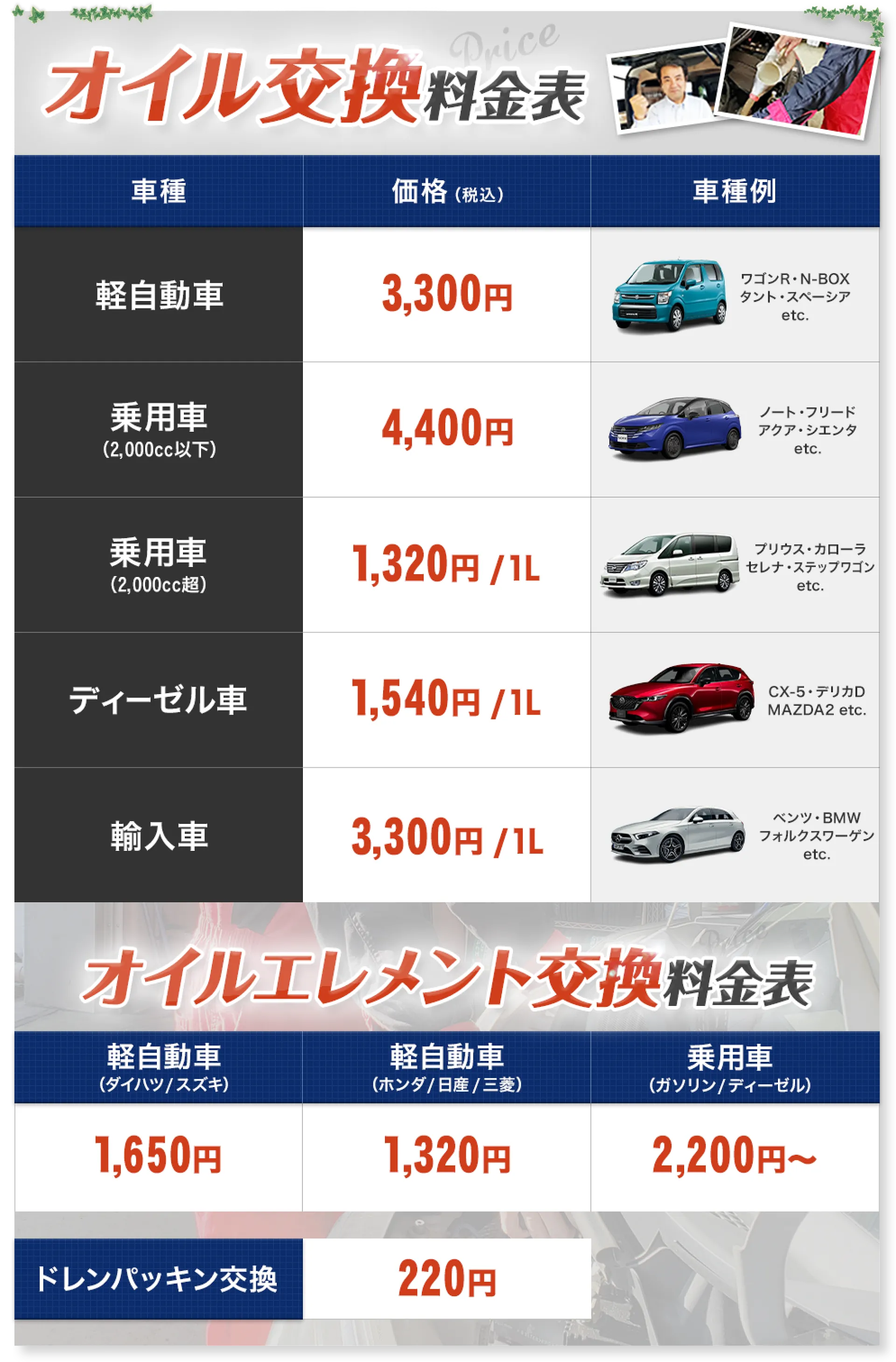 エンジンオイルは定期的な交換が必須な基本のメンテナンスになるので、安価な価格でお気軽に交換をしていただいた方がお車のためにもなります。