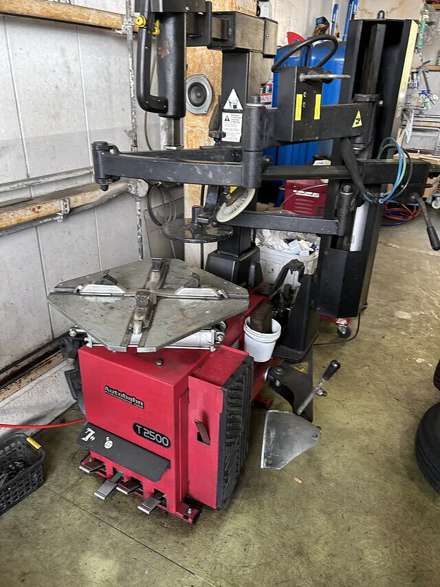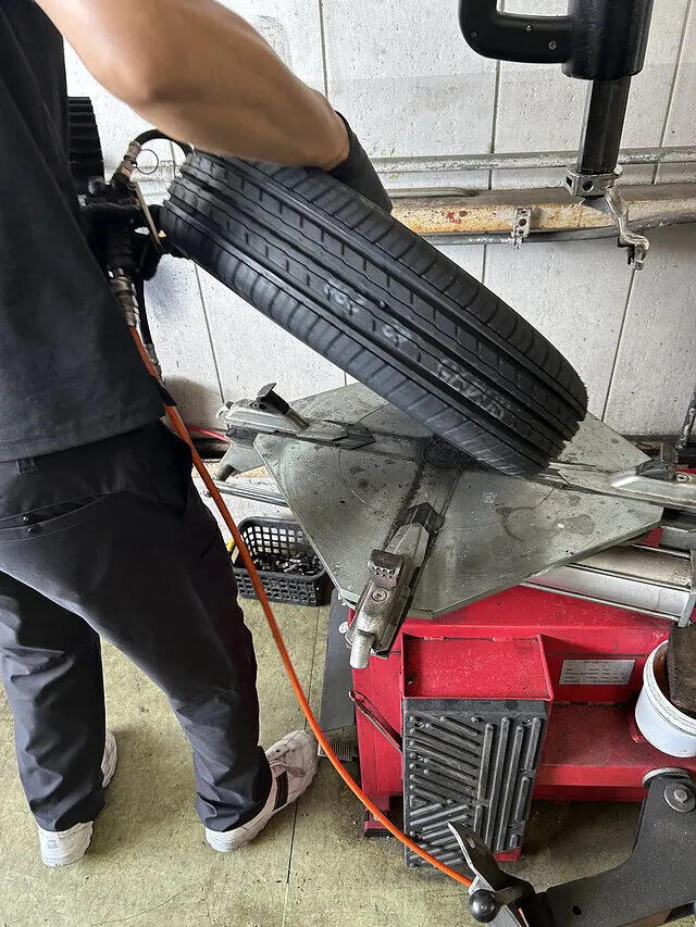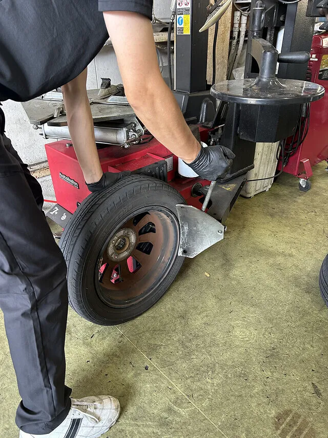 次に、タイヤチェンジャーを使用して古いタイヤをホイールから丁寧に取り外し。