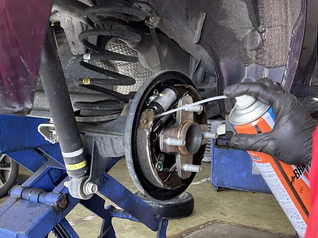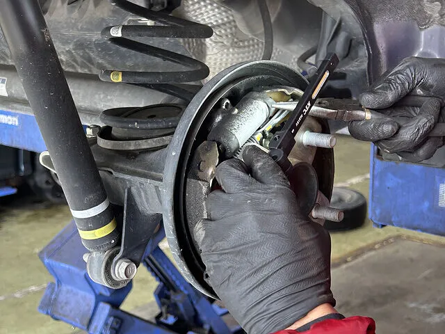 ブレーキドラム部分もチェックし、シューの残量・ホイールシリンダーの漏れがないことを確認。