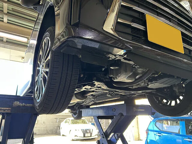 まずはリフトで車両を持ち上げ、下回りの状態を確認します。