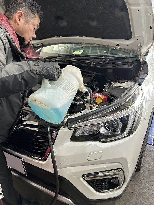 注入量は車両に合わせて細かく管理し、入れ過ぎや不足が起きないよう注意します。