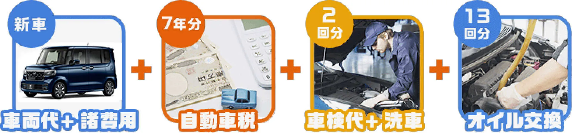 車両代・車検代・自動車税・オイル交換などの維持費も全て月額費用に含まれております。